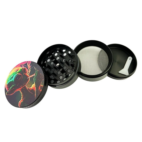 Zestaw do palenia Alien Odkryj wyjątkowy zestaw do palenia Alien, który przeniesie Cię w inny wymiar! Ten starannie skompletowany pakiet zawiera wszystkie niezbędne akcesoria dla prawdziwych koneserów. Zawartość zestawu: • szklana fajka bongo z motywem Alien – solidna konstrukcja i efektowny design. Dzięki specjalnemu zwężeniu w szyjce możliwe jest umieszczenie kostki lodu, co zapewnia chłodniejszy i bardziej przyjemny dym. • młynek do suszu – zapewnia precyzyjne mielenie. • szklany słoiczek na susz – zachowaj świeżość na dłużej. • metalowa tacka – idealna do przygotowania suszu. • pakiet – King size cone! Wysokość fajki: ok. 19,5 cm Wymiary młynka: wysokość: ok. 3,5 cm, średnica: ok. 5 cm Długość tacki: ok. 18,5 cm